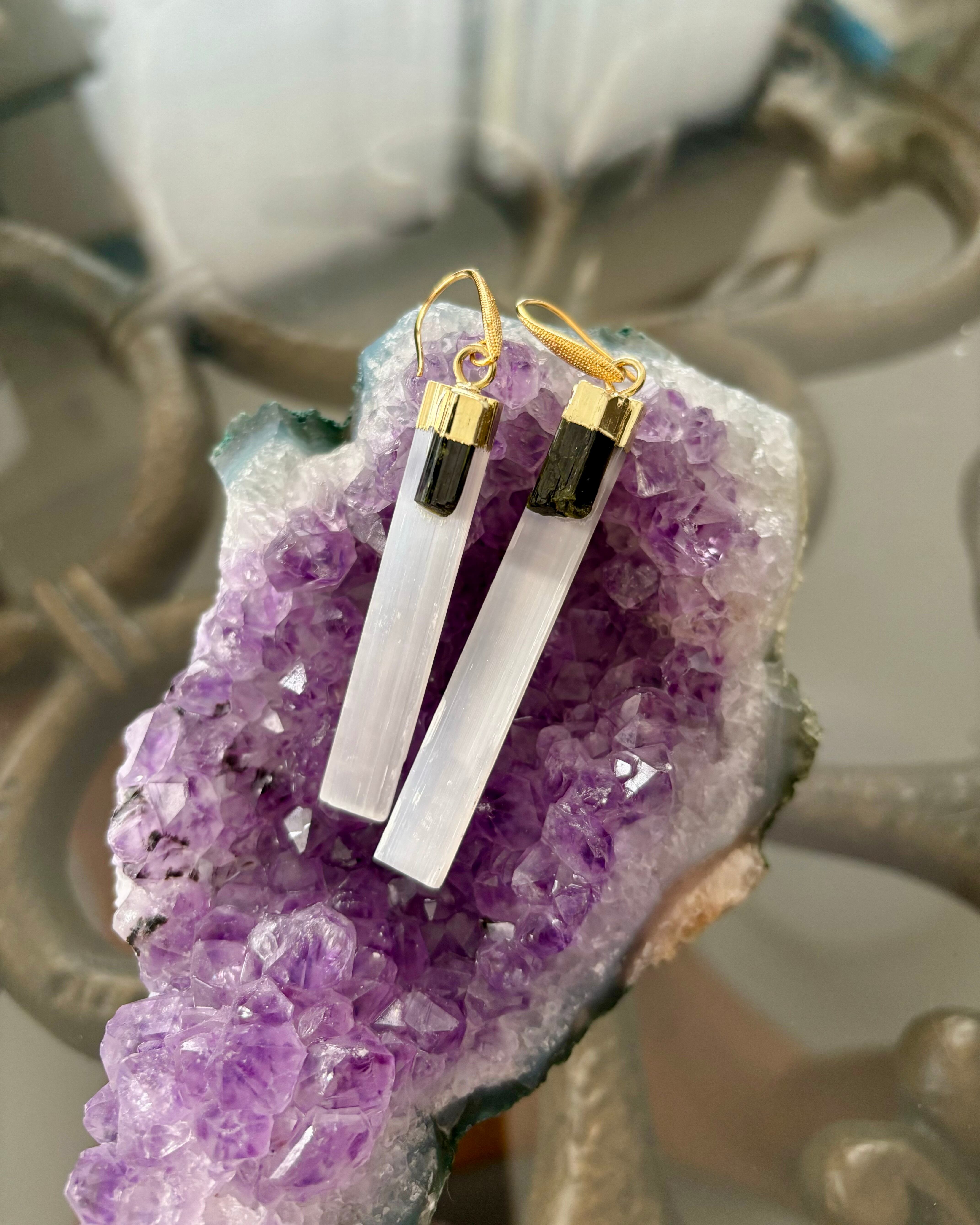 【NEW】セレナイト・トルマリンピアス